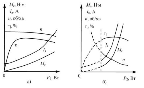 для двигунів постійного струму: а - з паралельним збудженням, б - з послідовним