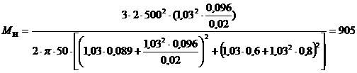 моменті на валу 905 Нм. На графіку штучної механічної характеристиці, частота