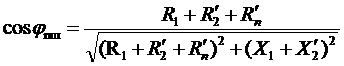 коефіцієнт потужності при пуску двигуна із замкненим накоротко ротором.