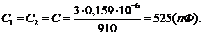 З ряду Е24 приймається найближче стандартне значення С=510 (пФ)