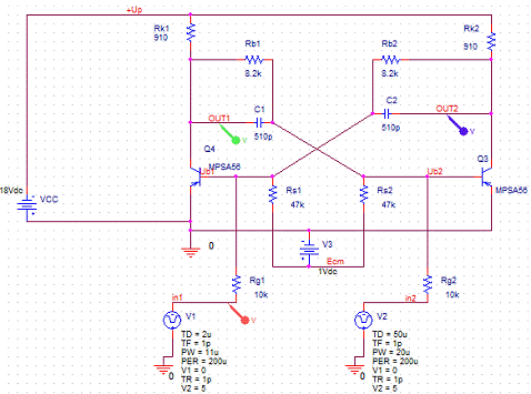 В результаті моделювання було виявлено деякі розбіжності між очікуваними і отриманими результатами, але ці розбіжності лежать в допустимих межах. Це свідчить про досить точний розрахунок параметрів, які забезпечили нормальне функціонування схем при моделюванні.
