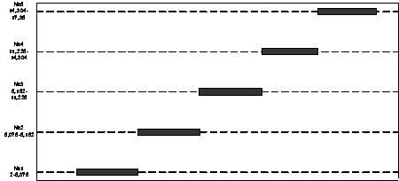 з третього інтервалу, розподіл на піддіапазони проводимо методом рівних
