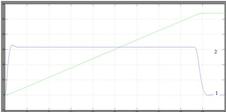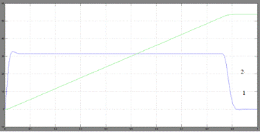 Рисунок 13. Контур швидкості з ПІ-регулятором та накиданням навантаження.