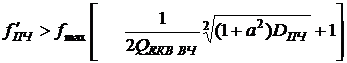 У формулах, що наведені вище, застосовані такі позначення:min, fmax - найменша і найбільша частоти приймача (наприклад, fmin=2 МГц; fmax=12 МГц), які можна з’ясувати у вихідних даних;ЕКВ ВЧ, QЕКВ ПЧ - еквівалентні добротності вибіркових систем високочастотного тракту і тракту проміжної частоти (наприклад, QЕКВ ВЧ=50; QЕКВ ПЧ = 100), підстави для обрання якого наведені в [4];