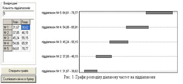 Прилад графіка, що відображає розподіл діапазону частот на під діапазони, поданий на рис.1.