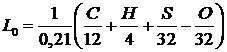 необхідно, кількість повітря для згоряння 1 кг палива L0, кмоль/кг [6]: