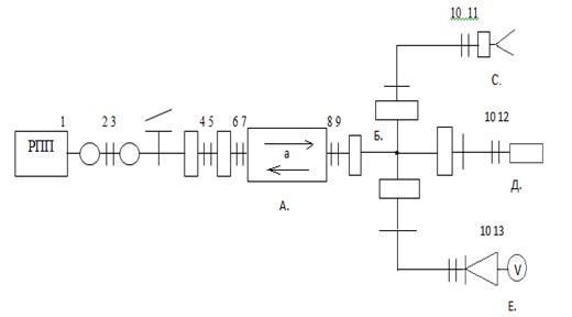 поступає в пристрій, який має ідеально узгодженні вузли А, Б, С, Д і Е (рис.1).