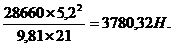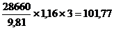 G - повна вага тари з пасажирами, Н; G = 28660 Н;