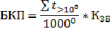 де БКП - біокліматичний потенціал продуктивності культури, бал; ∑ t >100 - сума ефективних температур більще 100; КЗБ - коефіцієнт зволоження, абсолютних одиниць; 10000 - сума температура на північній межі землеробства, С0.
