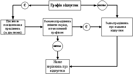 відділу кадрів, який готує наказ про надання відпустки, що потім передається до