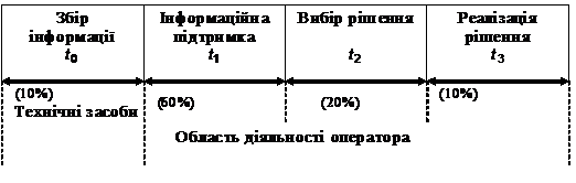 Як видно з діаграми (рис.1.1), значна частина часу йде на обробку інформації і формування гіпотез. На вибір рішення приділяється досить малий час, що може привести до низької його імовірності. Це може викликати прийняття неадекватних рішень.
