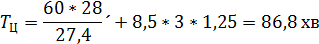 Отже, для обчислення тривалості робочого циклу крану всі елементи вже розраховані.