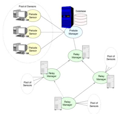 На рисунку 1.4 представлена логічна схема з'єднання компонентів системи виявлення вторгнень Prelude.