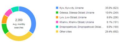 запитів за місяць дорівнює 2 350, що становить 10,8% від світової статистики