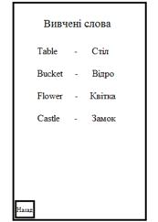 Рисунок 2.4 - Режим повторення слів, після натиснення кнопки “Розпочати”