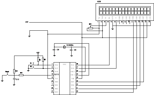 На рисунку 2.10 зображено електричну схему індикатора швидкості обертання вала електродвигуна, який здійснює обробку первинної вимірювальної інформації датчика та виведення інформації на дисплей.