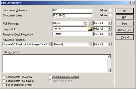 генератор імпульсів. Параметри налаштування мікроконтролера в Proteus