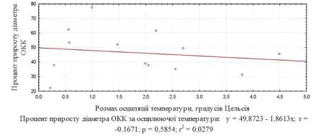 недостовірна кореляція між приростом діаметра ОКК і величиною розмаху осциляції