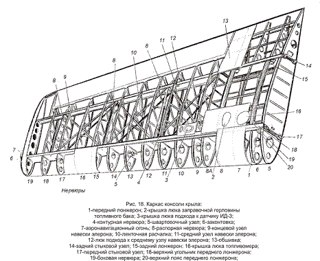 косинець переднього лонжерона; 19 - бокова нервюра; 20 - верхній пояс
