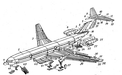Планер літака складається з деталей, вузлів, панелей, відсіків і агрегатів (мал. 4.1).