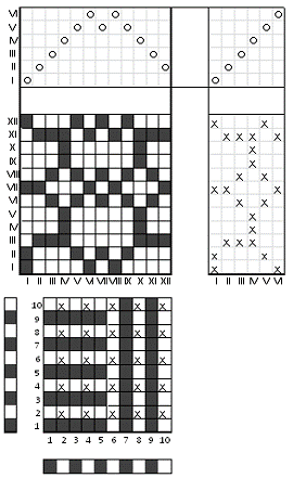 При розробці мотивного патрона вважаю, що зафарбована клітинка візерунка містить горизонтальні штрихи, а не зафарбована - вертикальні.