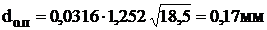Потім знаходжу розрахунковий діаметр ниток в тканині :