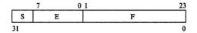 містить знаковий розряд S, 8-розрядне поле для зміщеного порядку В і