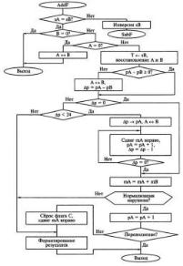 Послідовність дій виконання множення визначається старшим розрядом регістра множника.