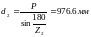 8) Делительный диаметр ведомой звездочки: