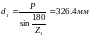 7) Делительный диаметр ведущей звездочки: