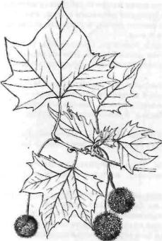 Листья и плоды платана кленолист- |