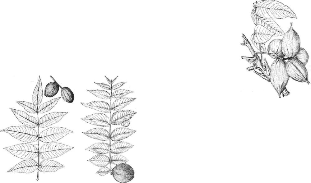 Листья и плод ореха черного. |