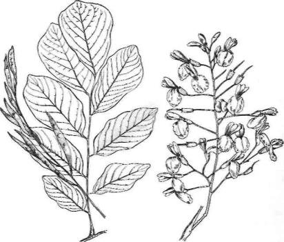Koch.). Дер ево до 2 0м высотой, с широкоовальной кроной и гладкой светло-серой корой. Листья крупные, до 40см длиной, сложные, непарноперистые, с 7—11 овальными листочками. Цветки мотыльковые, крупные, белые, душистые, собраны в большие (до 40 см), вертикально свисающие кисти. Очень эффектные. Цветет в конце мая и июне.