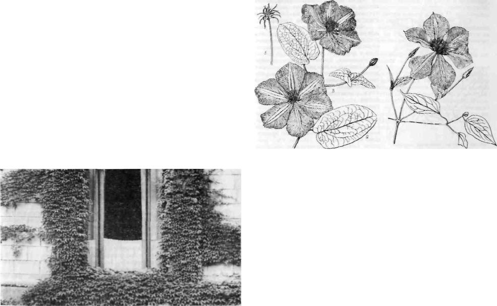 присосок или воздушных корней; кустарники с декоративной листвой, цепляющиеся за опору с помо-