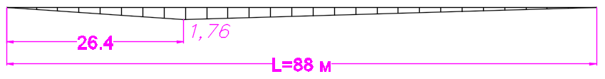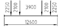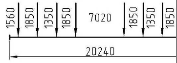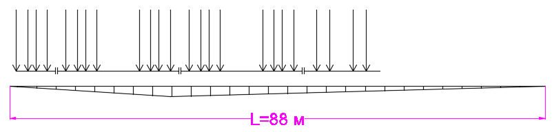Самым невыгодным загружением будет связка из 8-осных вагонов, т.к. расстояние между осями в их тележках меньше, чем расстояние в тележках локомотива, а нагрузка на ось у них больше, чем у локомотива. Загружение линии влияния приведено на рисунке 3.