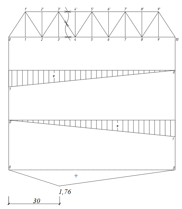 Рисунок 3 –Загружение линии влияния раскоса