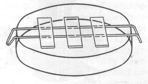 На обезжиренном предметном стекле делают мазки разных бактерий: в центре мазок исследуемой культуры, слева и справа – контрольных культур (рис.5), одна из которых должна быть грамположительной (Sarcina), другая – грамотрицательной (Escherichia coli). Мазки готовят, как и при простом способе (см. с. ).