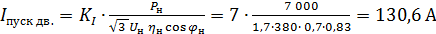 Определим пусковой ток электродвигателя