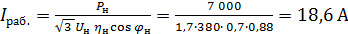 где: Pн = 7 кВт - номинальная мощность. KI - кратность тока при пуске; ηн - КПД двигателя.
