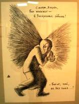 Так, рядом с изображением старухи можно читать следующие монологи: "То