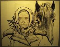 ухаживает за лошадьми. За морщинистым лицом этим помимо страдания - великое
