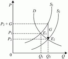 Если же субсидию получит покупатель, то на величину G переместится кривая спроса, а не кривая предложения.