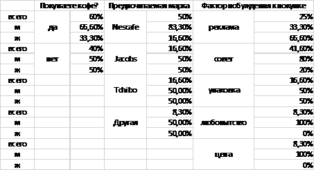 мужчинами, а 66,6% их этой совокупности являются потребителями кофе Nescafe. В ходе исследования