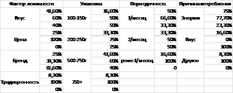) Судя по полученным данным, лояльность потребителя