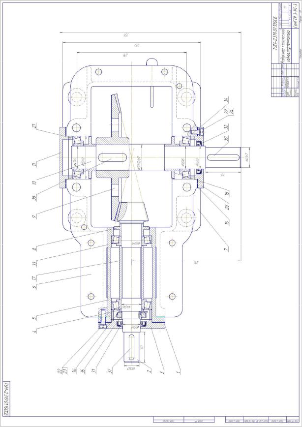 Построение сборочного чертежа червячного редуктора полностью закончено. Щелчком на кнопке Сохранить документ на стандартной панели запишите чертеж на диск.
