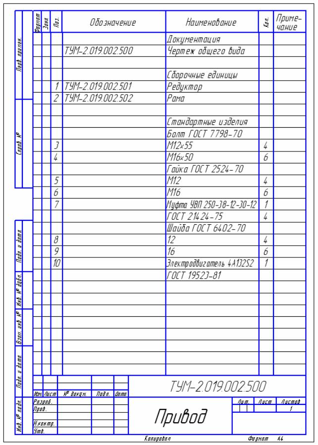 шемся на экране диалоговом окне отключите опцию Связь сборочного чертежа со спецификацией. Запишите созданный документ под именем, например ТУМ-2.04.01.000, в папкуПривод 04.01.