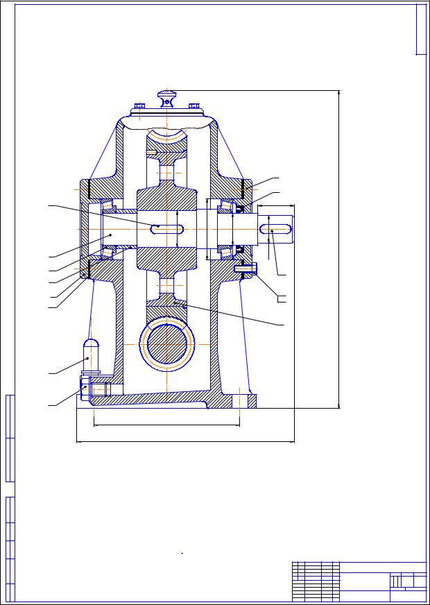Р и с. П17. Пример сборочного чертежа одноступенчатого конического редуктора типа КБ (вид сбоку)