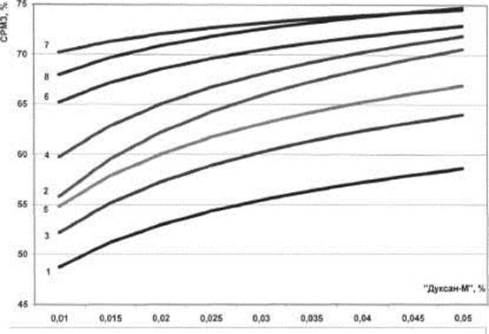 постоянном значении комплексообразователя "Дуксан-М" (0,03 %)