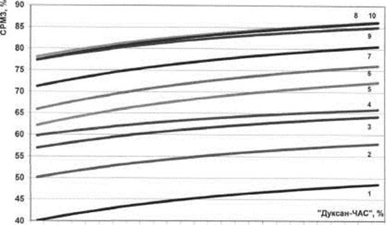 (0,1 %) и "Дуксана-ЧАС" (0,036 %): Ао = 58,76565; А, = -0,56069;