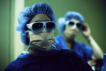 в халате резиновых перчатках, защитных очках, фартуке, респираторе или маске (Рис.